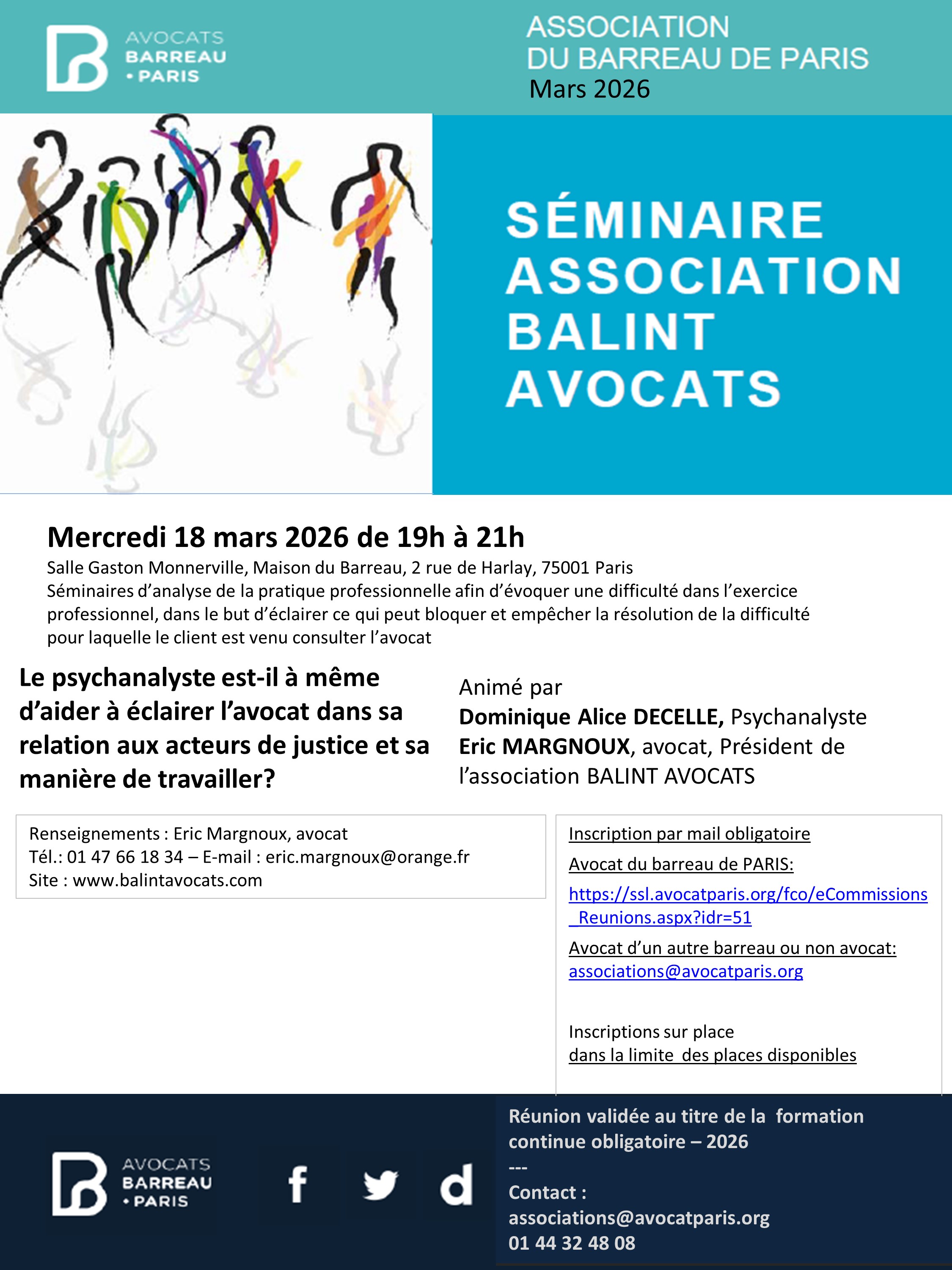 Association Balint Avocats Ordre des Avocats de Paris Bureau des Associations 4 Boulevard du Palais 75001 PARIS balintavocats.secretariat@gmail.com Association du Barreau de Paris Presse